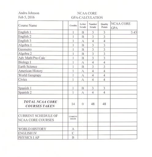 NCAA CORE GPA: 3.43